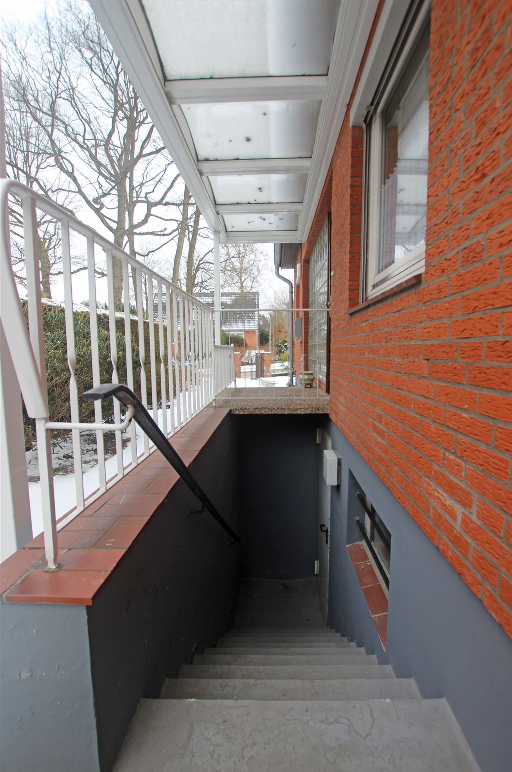 - Hauseingang und Kellerniedergang großzügig überdacht